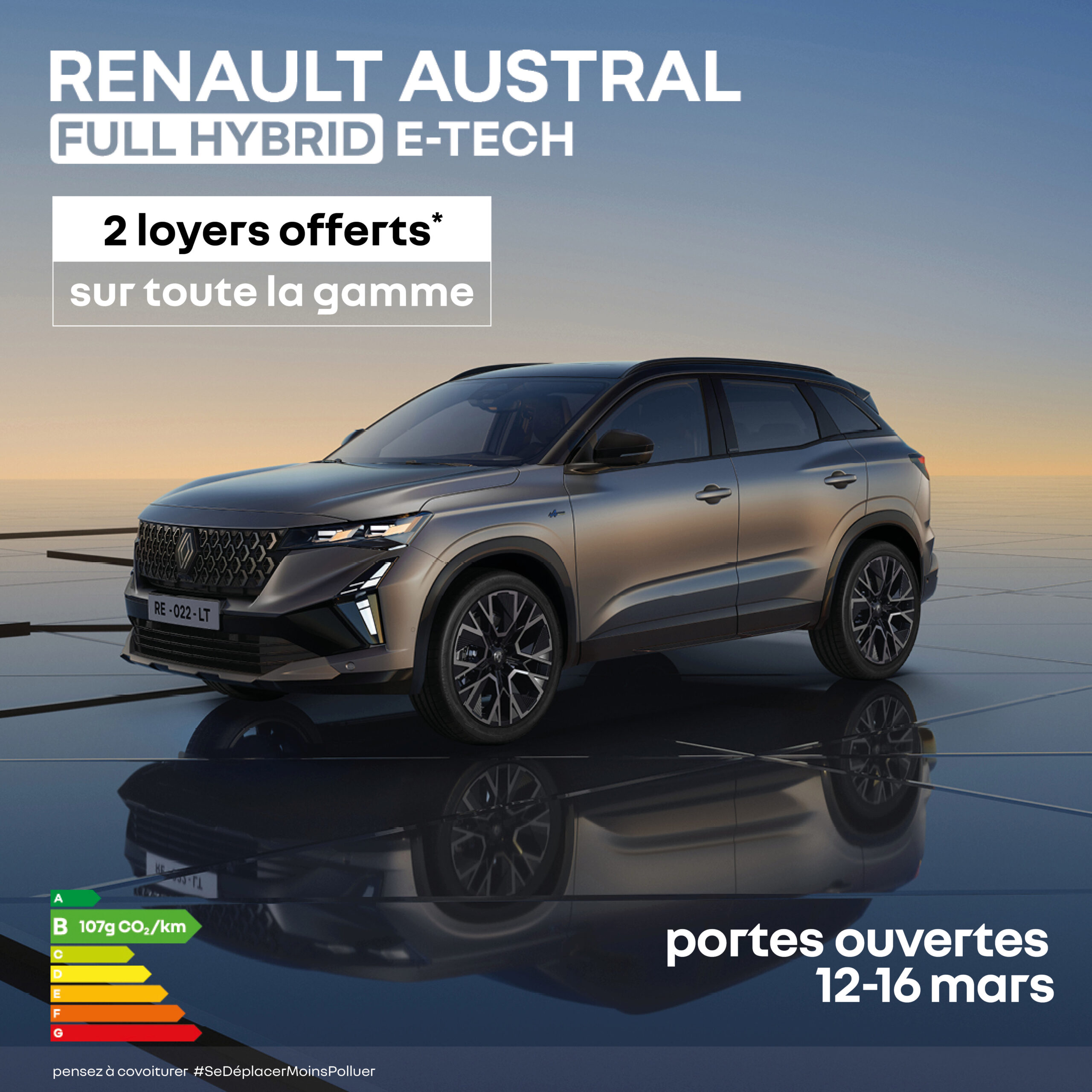2 loyers offerts* sur toute la gamme Renault du 12 au 16 mars 2026